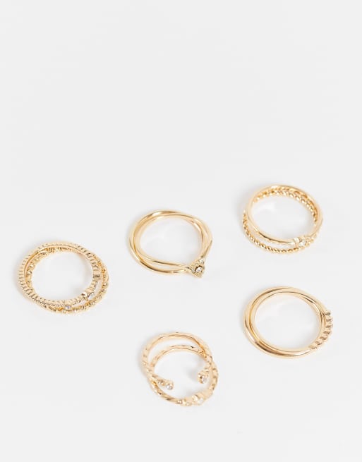 Topshop - Set van 10 ringen met witte opaal in goud