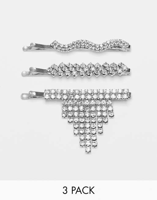 Topshop - Set van 3 cupchain haarspeldjes met siersteentjes in zilver