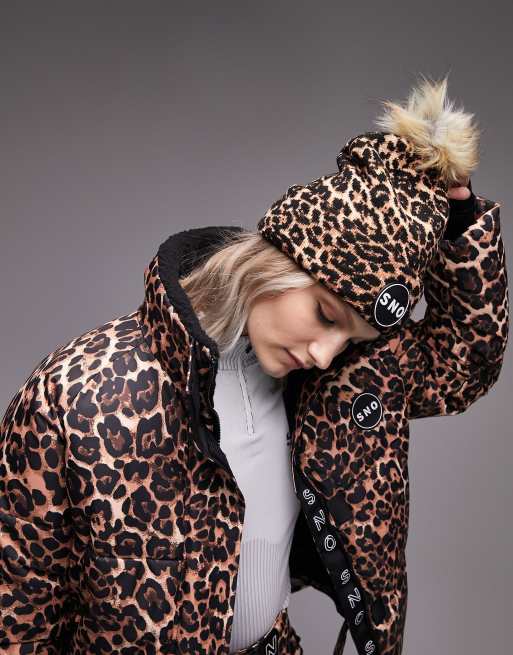 Topshop - Ski - Beanie met pompon van imitatiebont in luipaardprint