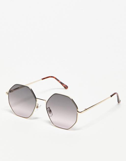 Topshop - Smalle, zeshoekige, metalen zonnebril in blauw