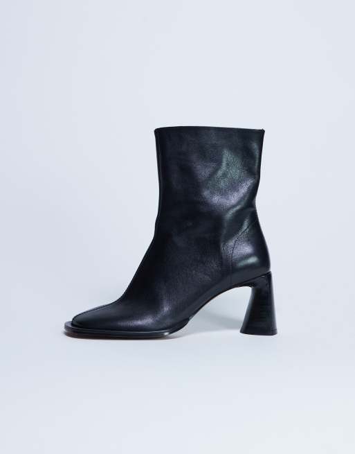 Topshop - Star - Premium - Leren laarzen met ronde neus en blokhak in zwart
