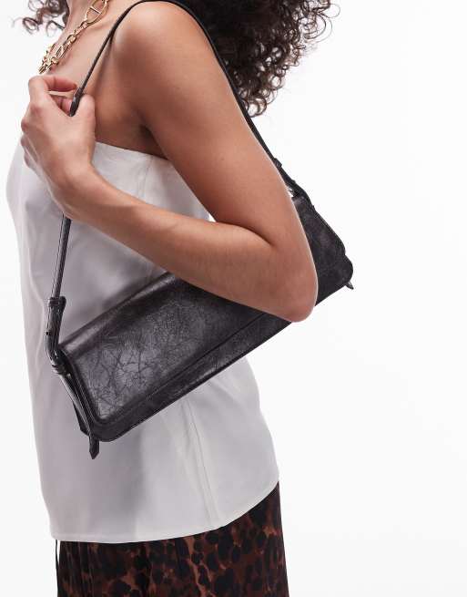 Topshop - Stassi - Langwerpige schoudertas in distressed zwart