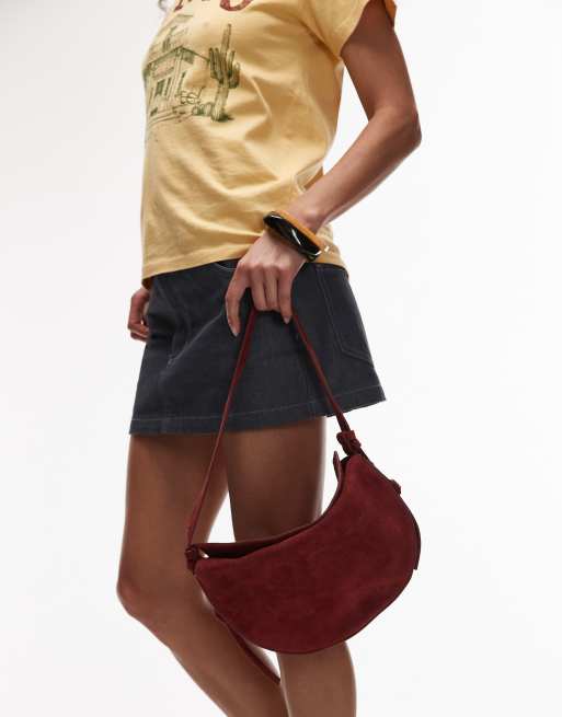 Topshop - Sunday - Suède schoudertas in rood