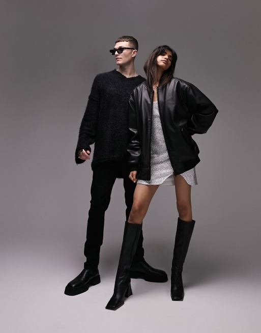 Topshop - Super oversized bomberjack van imitatieleer in zwart
