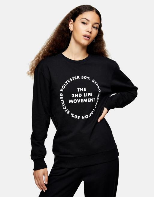 Topshop - Sweatshirt met '2nd life' slogan in zwart