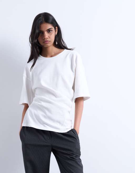 Topshop - T-shirt met gedraaid detail in ivoorwit