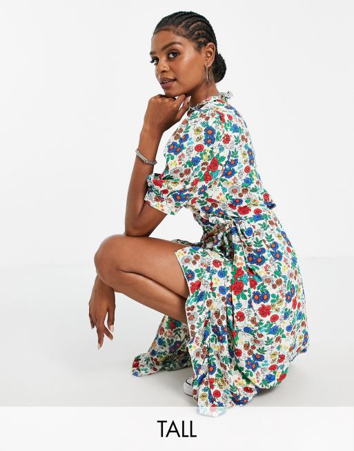 Topshop Tall - Midi-wikkeljurk met bloemenprint in multi