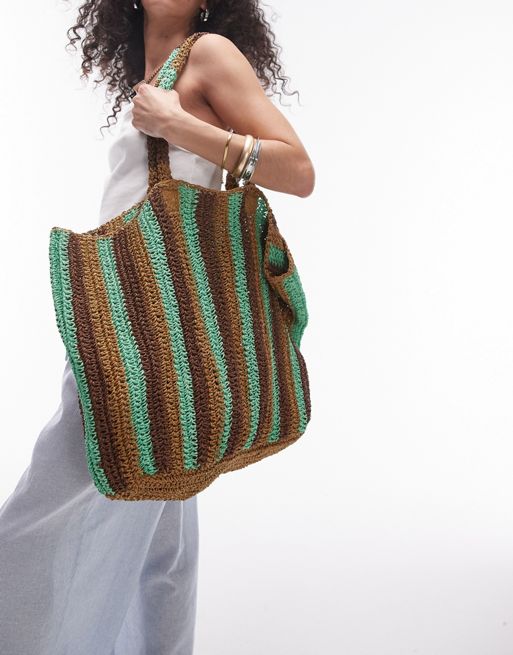 Topshop - Tana - Oversized geweven tote tas van stro in groene strepen