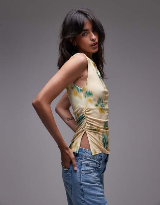 Topshop - Tanktop met rechte hals en vervaagde bloemenprint in geel