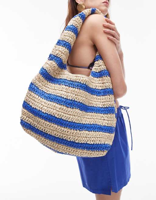 Topshop - Tilly - Schoudertas van stro met lage ronde bovenkant in blauwe strepen