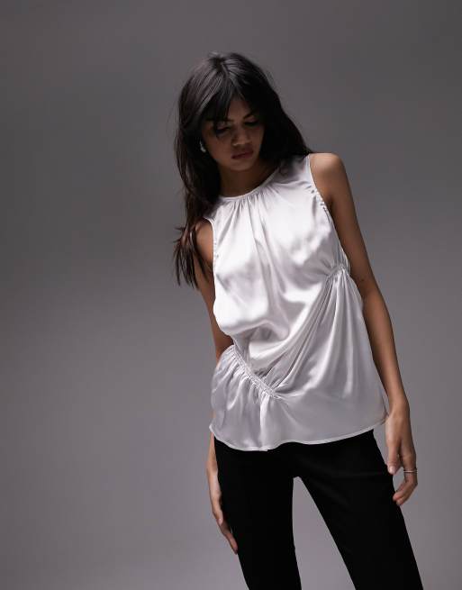 Topshop - Top met gerimpeld detail in ivoorwit