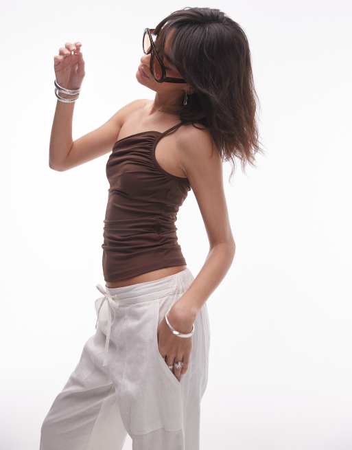 Topshop - Top van jersey met asymmetrisch bandje in bruin