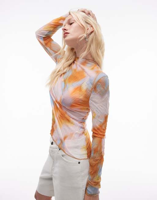 Topshop - Top van kreukelstof met lange mouwen en abstracte bloemenprint in multi