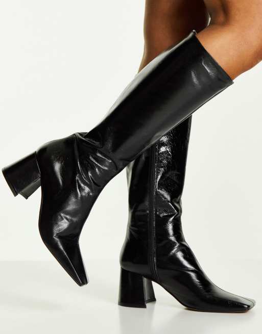 Topshop - Tula - Kniehoge laarzen van leer met halfhoge hak in zwart