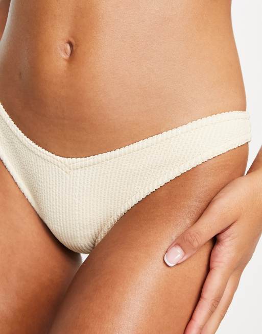 Topshop - V-vormig bikinibroekje van kreukelstof in ivoorwit