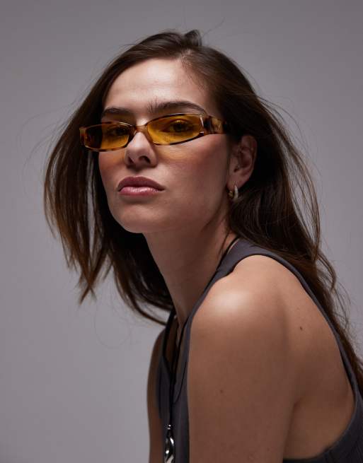 Topshop - Xanthi - Smalle rechthoekige zonnebril in tortoise met gele glazen