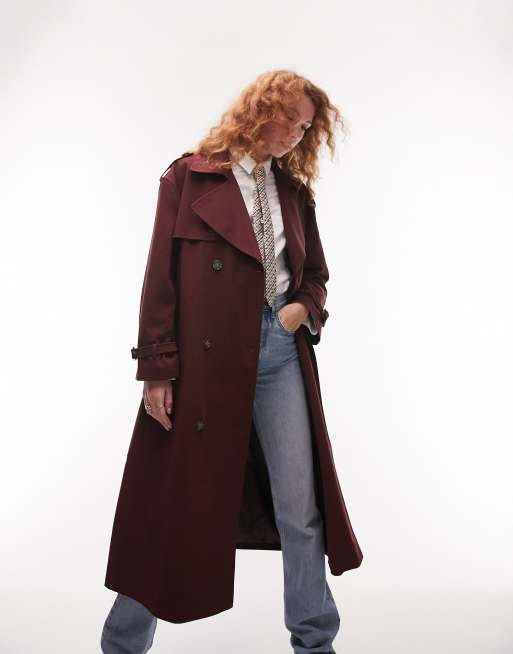 Topshop - Zachte oversized trenchcoat in bordeauxrood
