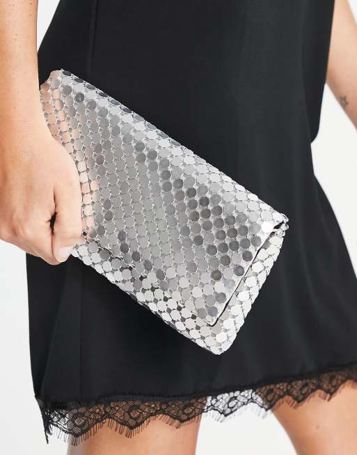 True Decadence - Clutch met flapsluiting van zilver mesh