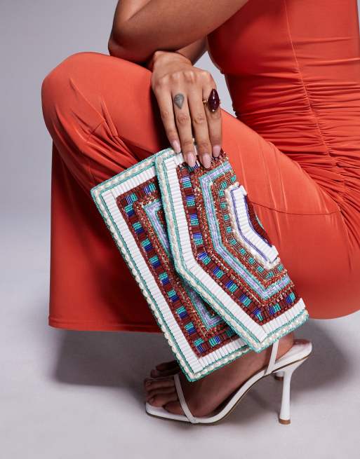 True Decadence - Envelop clutch met kralen in geometrisch motief in multi