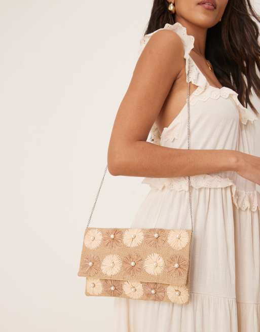 True Decadence - Envelopvormige clutch met bloemen in bruin
