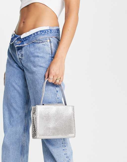 True Decadence - Mini handtas met slangenprint in zilver metallic
