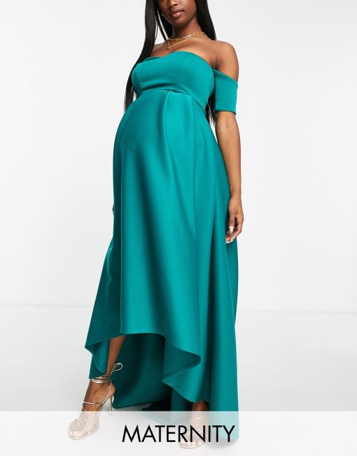 True Violet Maternity - Jurk met blote schouders en ongelijke zoom in smaragdgroen