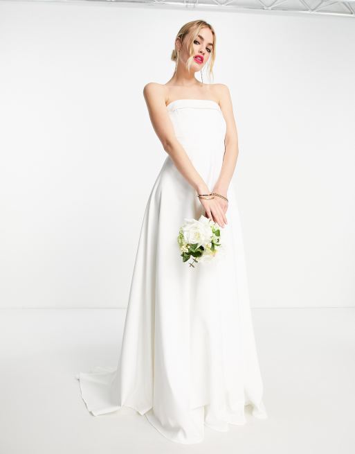 True Violet - Bruidskleding - Lange jurk met omgevouwen bandeau-hals in ivoor