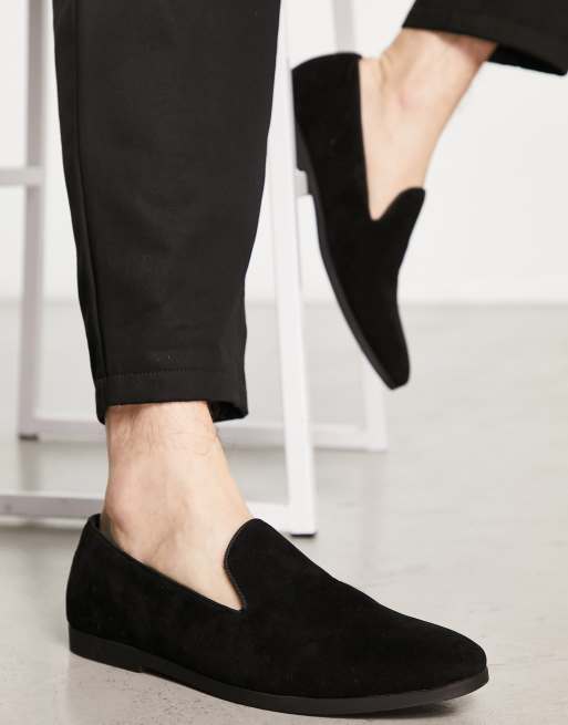 Truffle Collection - Imitatiesuède instaploafers in zwart