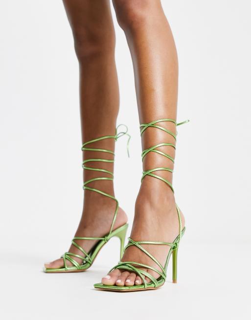 Truffle Collection - Sandalen met stilettohak, strikbandjes en vierkante neus in groen