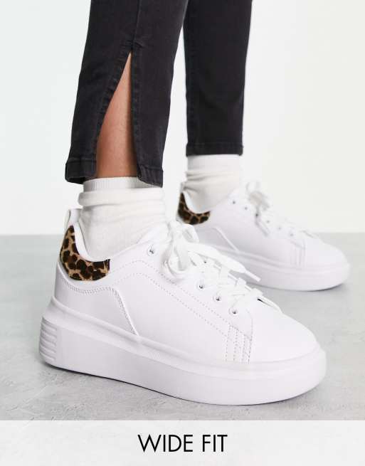 Truffle Collection - Sneakers met dikke zool en brede pasvorm in wit met inzetstuk achter met luipaardprint