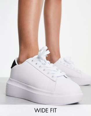 Truffle Collection - Sneakers met dikke zool en brede pasvorm in wit met zwart hielstuk