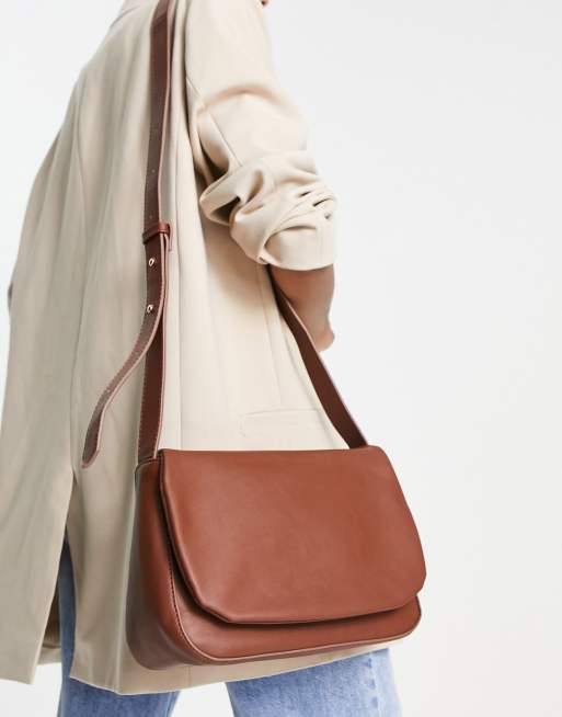 Truffle Collection - Soepele schoudertas met brede band in donkerbruin