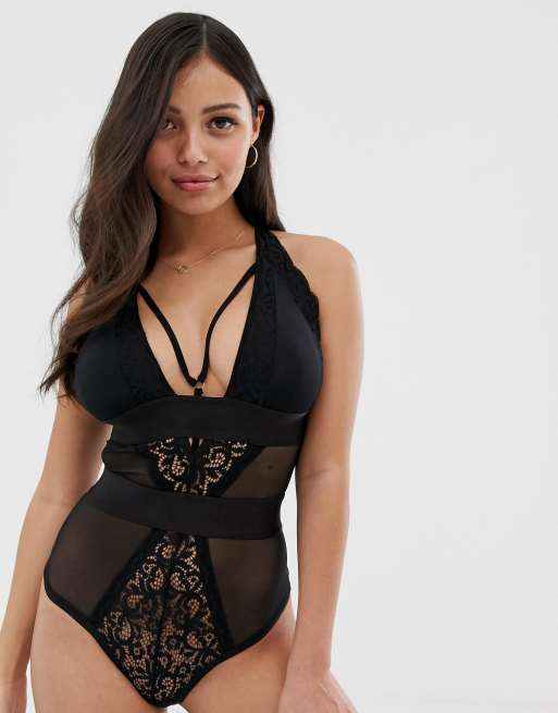 Tutti Rougette Alicia - Body voor grote cupmaten van kant en mesh met bandjes in zwart