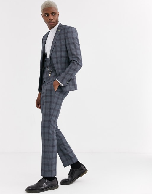 Twisted Tailor - Bruiloft - Superskinny kostuum in blauwe ruit