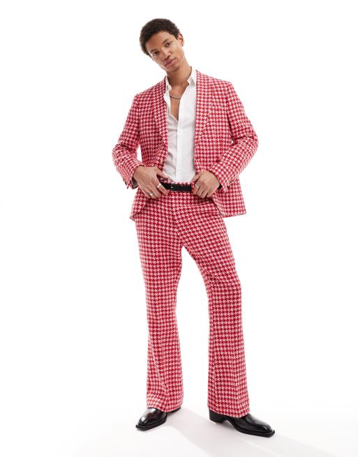 Twisted Tailor - Flared pantalon met pied-de-poule in rood en roze
