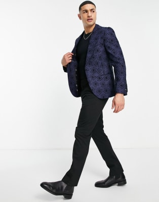 Twisted Tailor - Pak in marineblauw met geflockte ogenprint