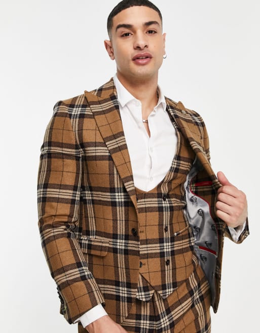 Twisted Tailor - Pak met Schotse ruit in bruin