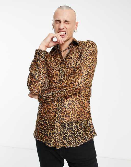Twisted Tailor - Shackley - Smal overhemd van mesh met luipaardprint in marineblauw