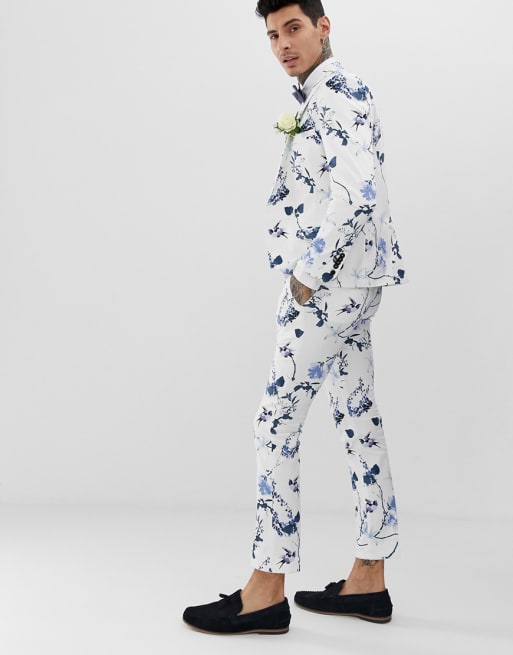 Twisted Tailor - Superskinny kostuum in wit met bloemenprint