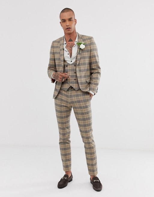 Twisted Tailor - Superskinny kostuum met ruitpatroon en ketting
