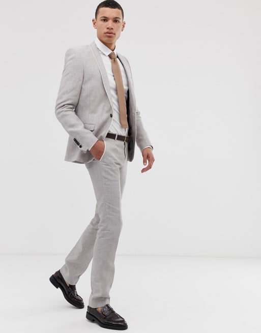Twisted Tailor Tall - Kostuum in kiezelkleurig linnen