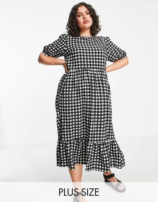 Urban Bliss Plus - Smockjurk met halflange mouwen en gingham ruit in zwart