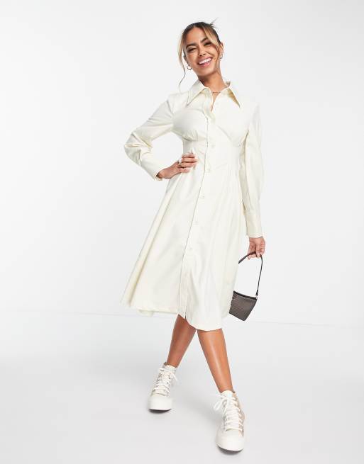 Urban Revivo - Midi-overhemdjurk met knoopjes in wit