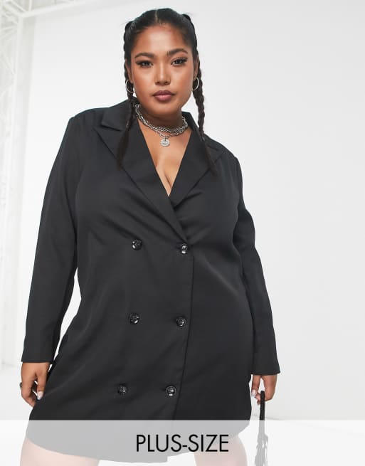 Urban Threads Plus - Double breasted blazer in zwart