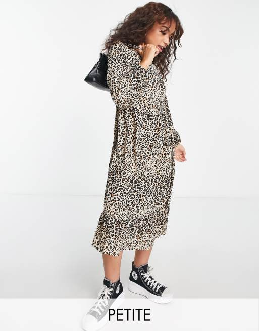 Urban Threads - Petite - Aangerimpelde midi-jurk met stroken en luipaardprint