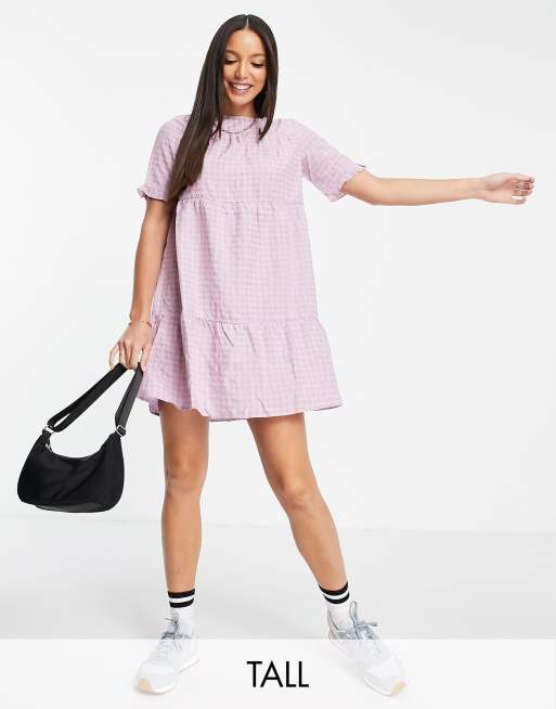 Urban Threads Tall - Gelaagde aangerimpelde jurk in lila gingham ruit