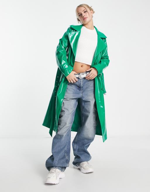 Urban Code - Trenchcoat van PU met lange pasvorm in felgroen