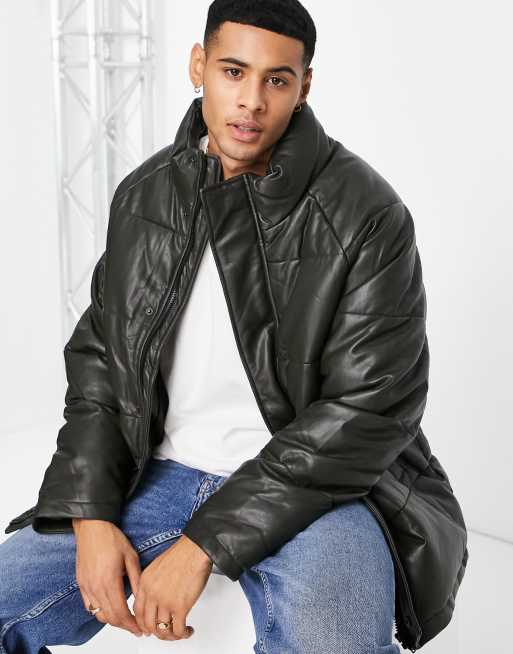 Urbancode - Gewatteerd puffer jack van imitatieleer in zwart