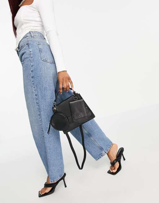 Urbancode - Leren crossbody tas met verschillende vakken en afneembare accessoires in zwart