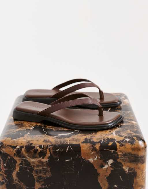 Vagabond - Shoemakers Izzy - Leren teenslippers in chocoladebruin